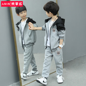 奥蒙威男童套装秋季2022韩版春秋装运动中大童儿童洋气潮童装两件套 ER-MZ-0020 灰色套装 120