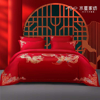 婚庆绣花龙凤结婚四六件套喜庆套件婚房大红喜被床上用品六件套 1.8米床(适配220*240cm被芯)