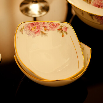 恒时88件订婚餐具套装欧式奢华碗碟景德镇高端骨瓷碗盘实用套餐 结婚送礼 幸福之家