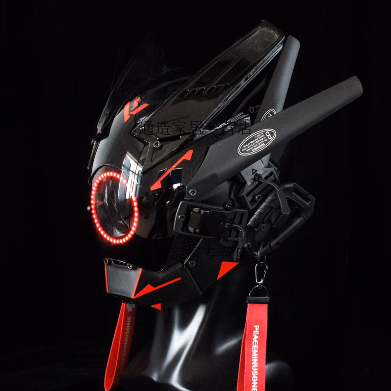 赛博朋克机械飞升头盔定制赛博朋克面具武士cosplay科幻装备机械头盔万圣节派对音乐节道具 发光款【黄色】
