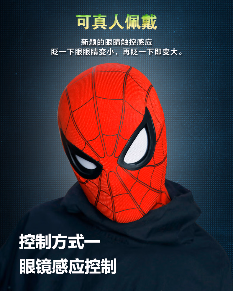 漫威周边荷兰弟蜘蛛侠头套眼睛可动面具英雄归来电动头套男生玩具礼物感应版本