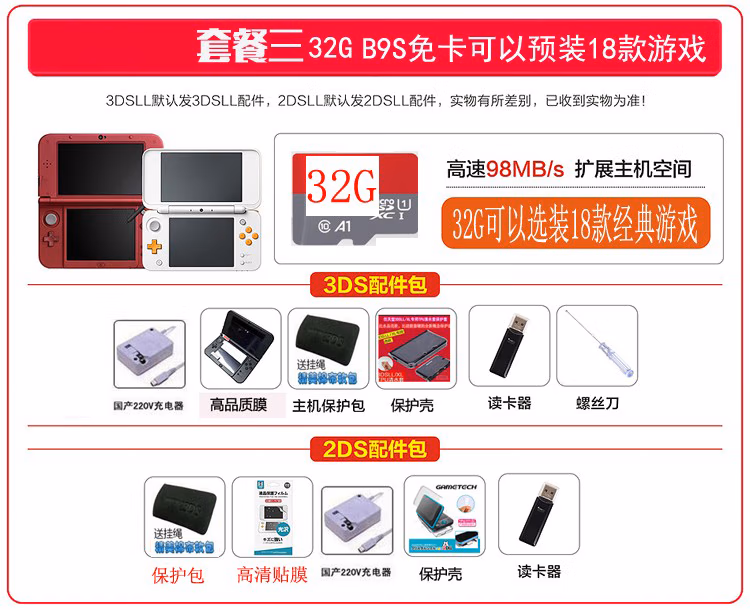 全新任天堂2DS NEW3DSLL 2DS口袋 限定 游戏机 装好游戏 2DS 蓝色 B9S 套餐三 日版