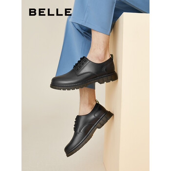 百丽牛皮商务休闲皮鞋男百搭马丁鞋子橡胶底86181CM0黑 41