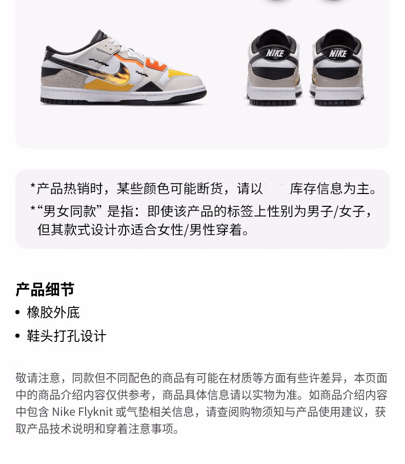 耐克(NIKE)DUNKSCRAP 男子运动鞋运动休闲舒适运动跑步DX6058 101白色/黑/白色/苍野灰/大学灰/热情黄 38.5