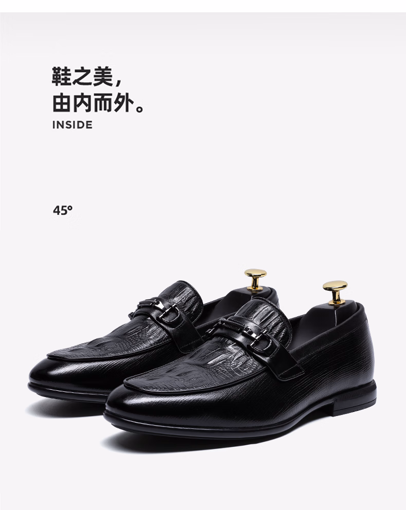 丹顿赫本(DENTONHEPBURN)奢侈品牌豆豆鞋男2022年秋季新款鳄鱼纹一脚蹬套脚商务休闲皮鞋黑色 38
