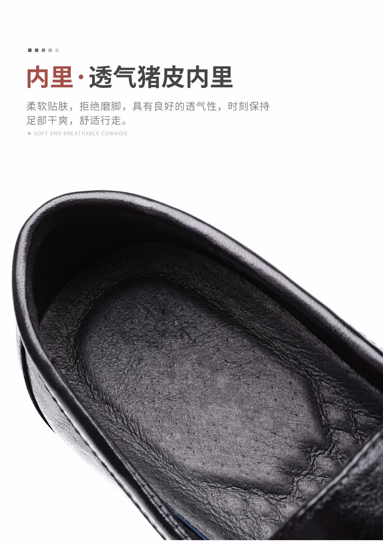 诗威络(SHIWEILUO)轻奢品牌商务休闲皮鞋男潮流软底黑色韩版套脚透气一脚蹬英伦男鞋真皮黑色 41