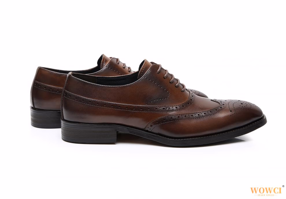 WOWCI哇次皮鞋男轻奢侈品牌高档正装鞋男黑色布洛克雕花牛津头层牛皮鞋男透气英伦百搭西装牛津皮鞋 咖 40