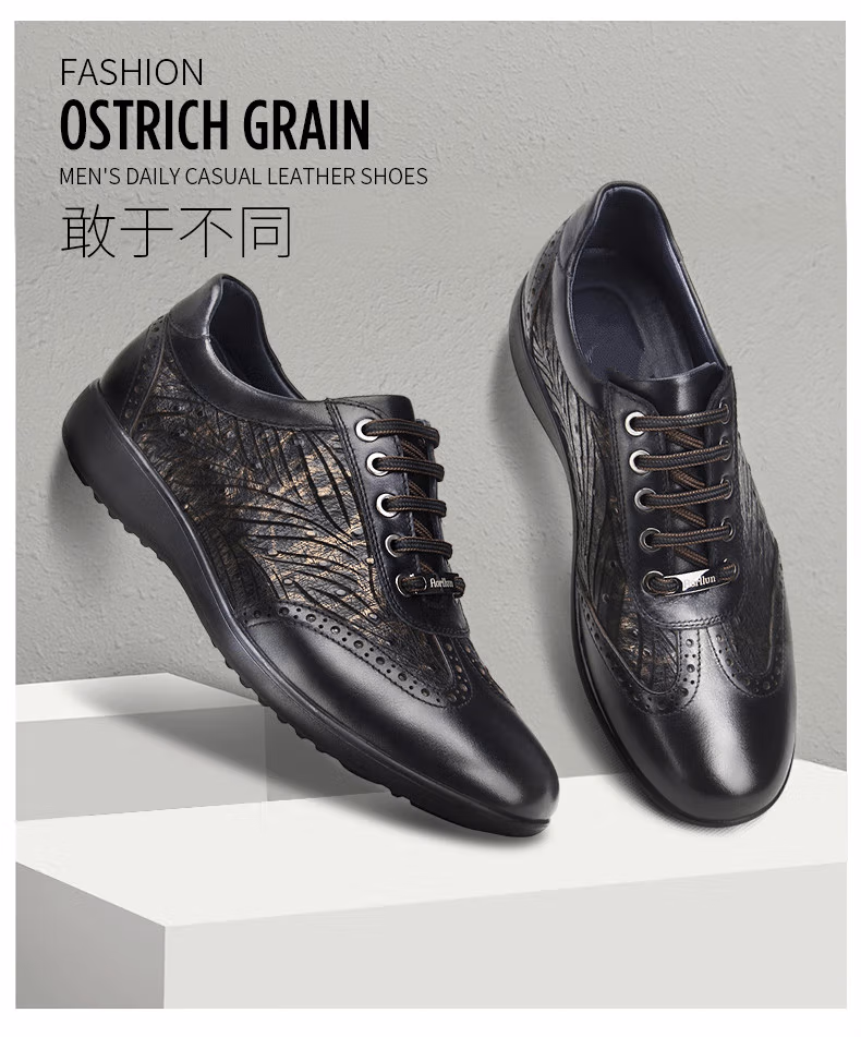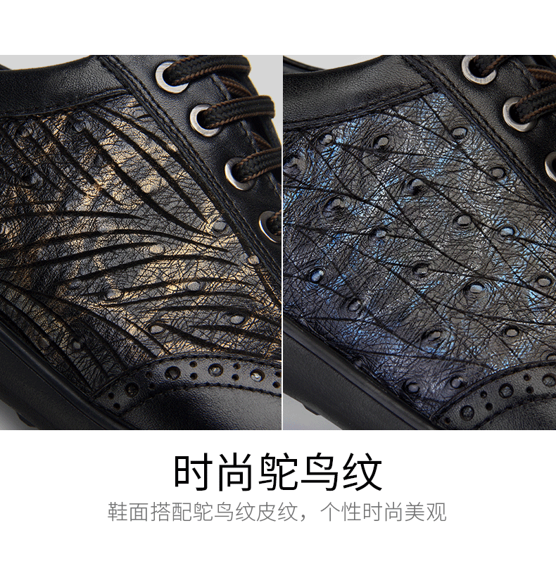 MACHANG℘麻常高端品牌奢侈品男鞋高档休闲鞋男士22年秋季鸵鸟纹真皮时尚潮流运动休闲皮鞋子男黑金【礼盒装】 42【礼盒装】