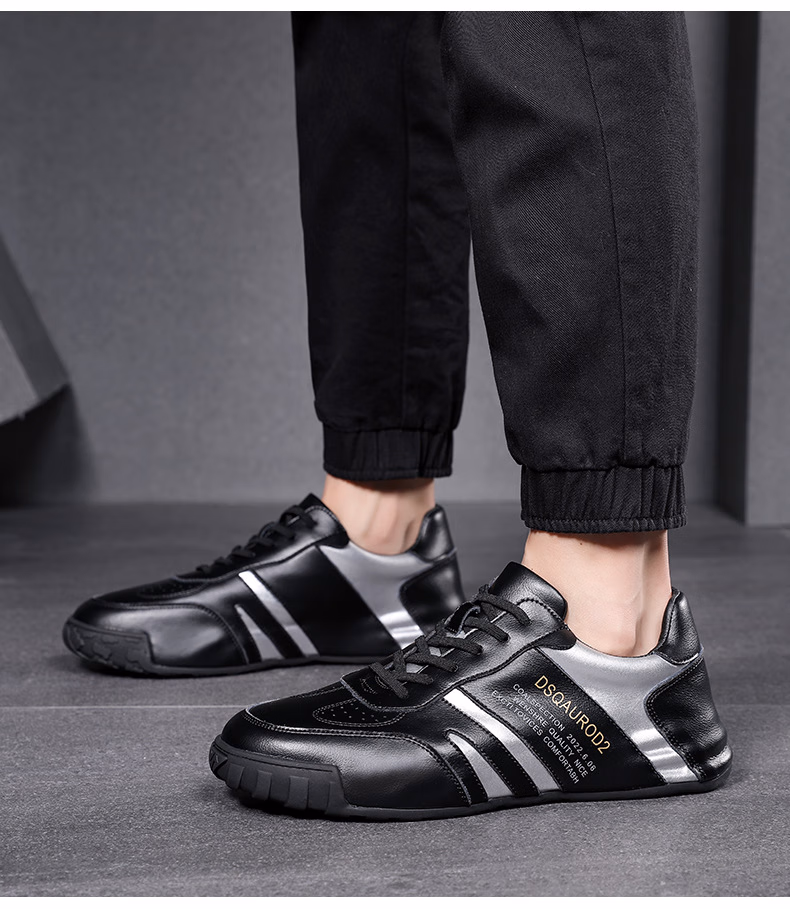LECEN乐岑小白鞋男高端轻奢侈品牌秋季新款低帮男鞋新品包底老爹鞋男士休闲鞋平底板鞋韩版潮鞋 黑色 38