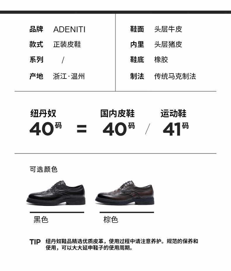 ℘ADENITI高端品牌轻奢侈品鞋靴高档皮鞋男布洛克英伦休闲潮流商务正装雕花青年西装婚礼鞋加绒男鞋 黑色【礼盒装】 38【礼盒装】
