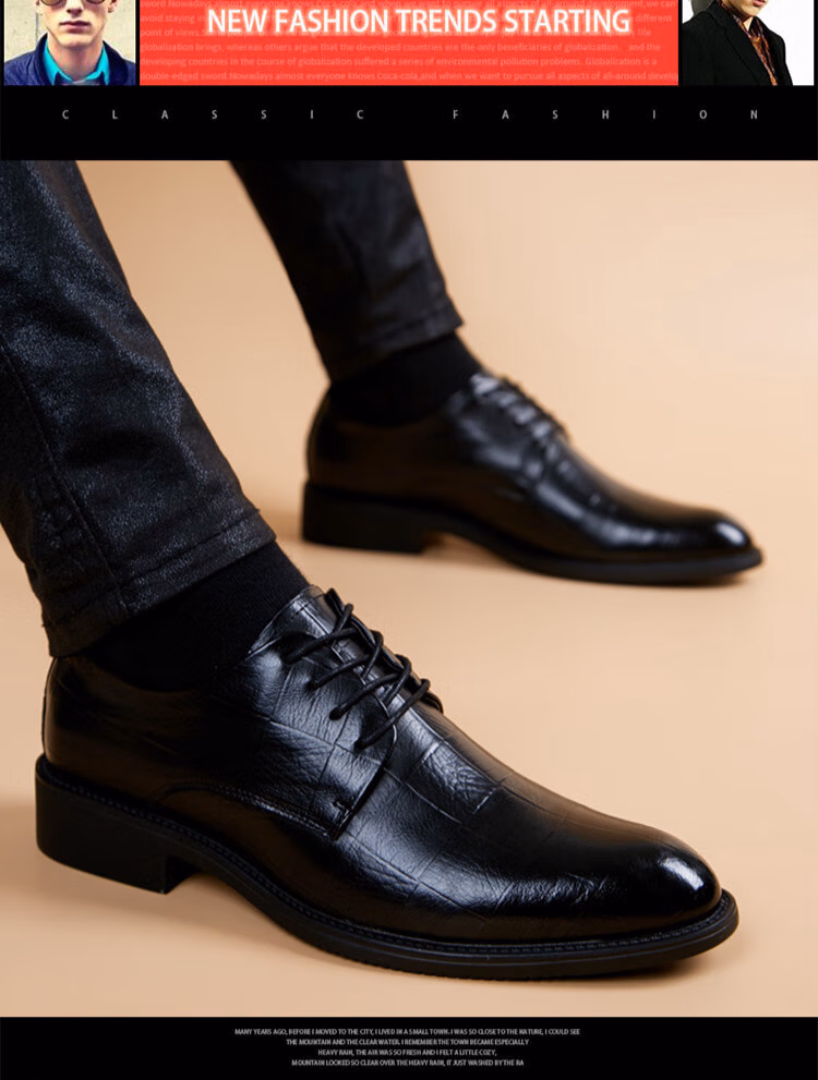 FAWWESA法唯莎高端品牌奢侈品男鞋高档正装鞋男士秋季皮鞋男软底时尚韩版英伦内增高商务休闲鞋子男 黑色 37