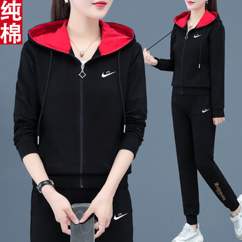 耐克运动套装女2022新款春秋两件套纯棉开衫连帽卫衣休闲运动服同款蓝色 3XL150-170斤