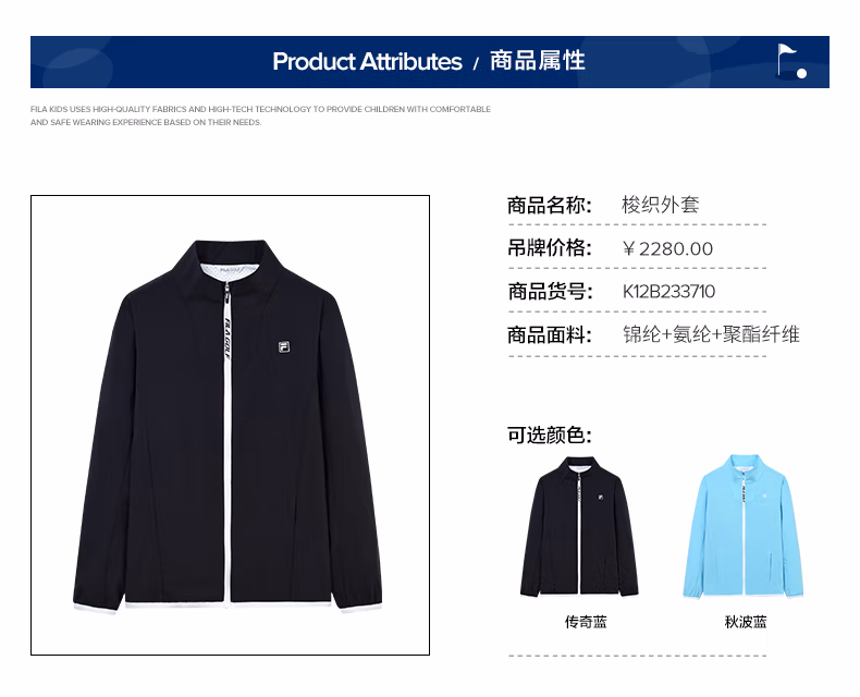 FILA斐乐童装儿童外套2022秋季新款男大童高尔夫运动时尚上衣潮传奇蓝-NV 160cm