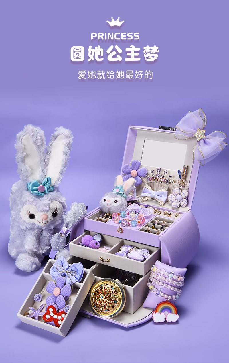 迪士尼儿童发饰套装礼盒生日礼物女孩饰品手链收纳盒精致创意礼品女月光宝盒粉色【版】