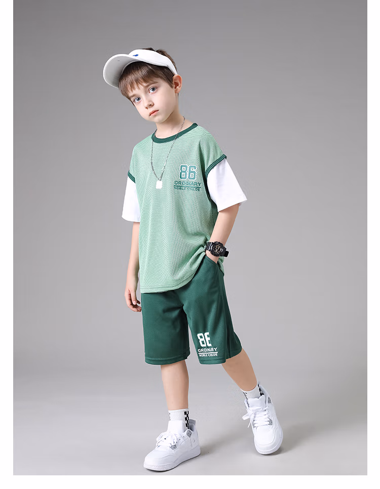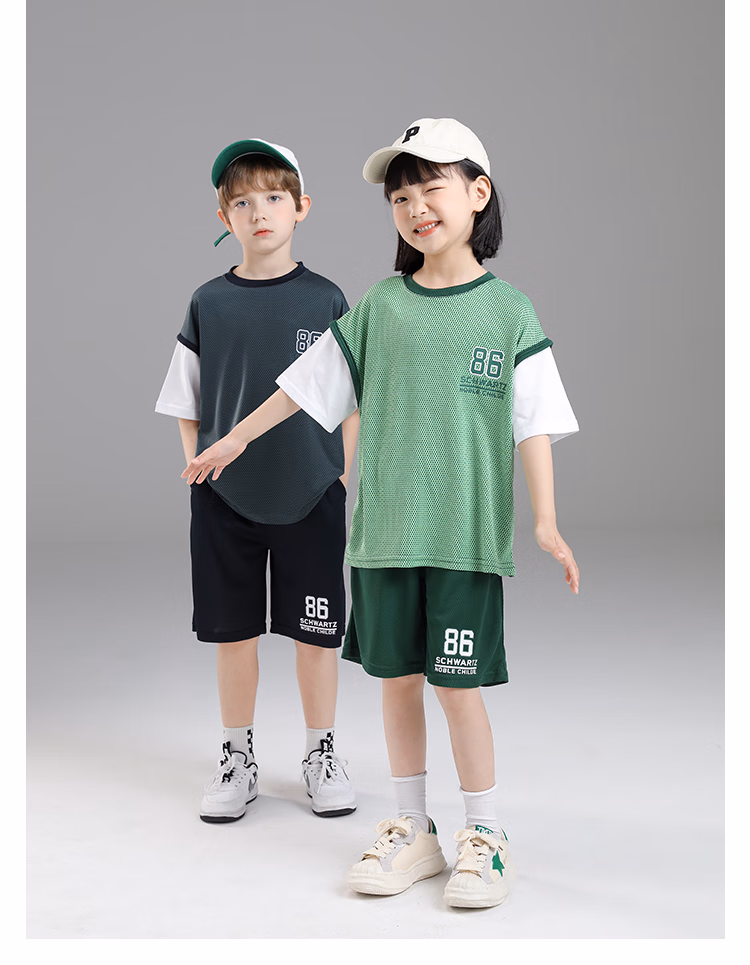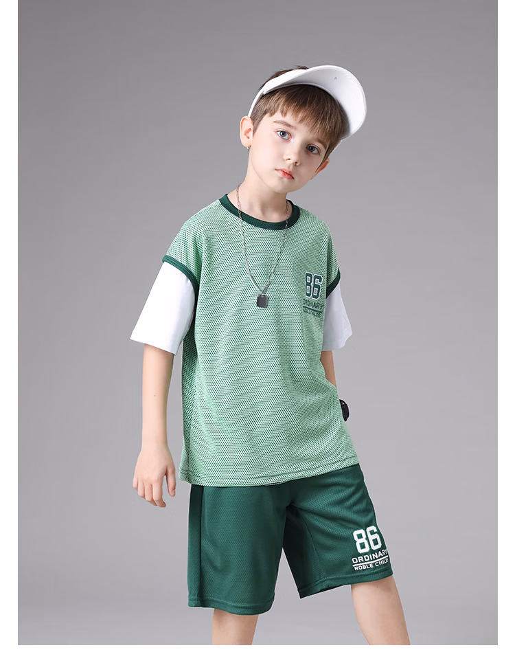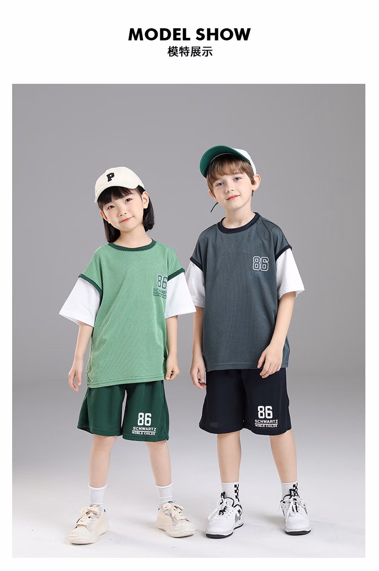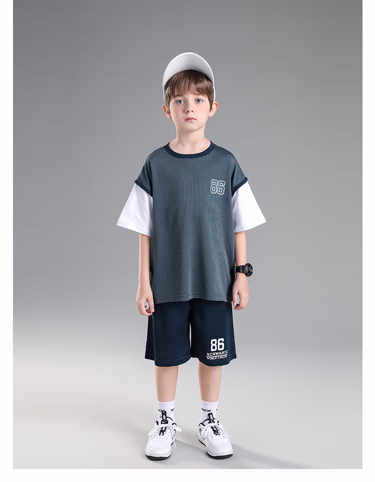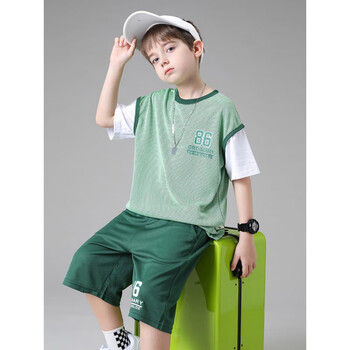 guan童装男童短袖T恤套装2022夏装新款中大儿童短裤两件套藏青色 110cm