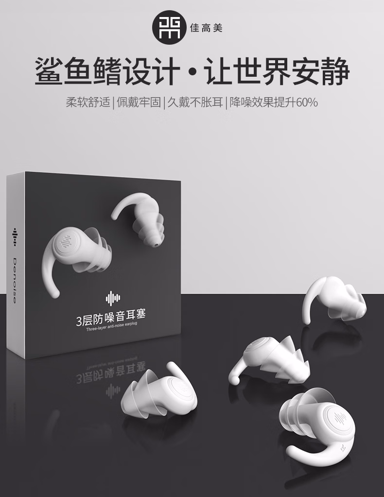 佳高美耳塞睡眠超强隔音打呼噜防噪音睡觉助眠专用学习消音降噪工业静音硅胶耳塞眼罩套装 白色三层