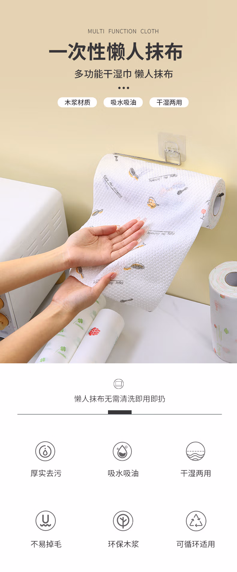 厨房一次性加厚可水洗印花干湿两用清洁洗碗不沾油百洁布R20*20cm【100片】
