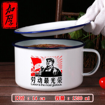 贝瑟斯搪瓷泡面碗带盖 大汤碗饭碗复古怀旧碗家用老式餐具面碗学生宿舍大容量方便面碗菜缸 1200ml