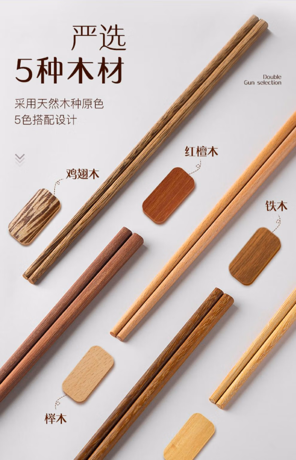 士纲轻奢品牌铁木筷子鸡翅木实木防滑一人一筷无漆无蜡家用筷子套装10双家庭装【B款】铁木筷10双