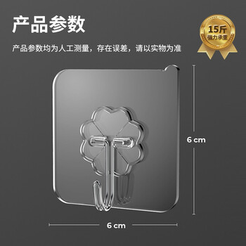 桂枫粘钩 (50丝加厚亚克力粘胶)强力无痕透明厨房卫生间免打孔免钉挂钩贴浴室门后毛巾衣服挂衣钩10个装