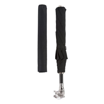 Pasotti意大利手工黑色伞面镀银金属虎头手柄自动男士折叠晴雨伞黑色