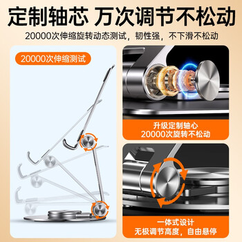 品胜(PISEN)平板支架ipad手机支架桌面绘画追剧直播拍摄网课游戏吃鸡床头懒人架子折叠便携全金属银色【360°旋转 加重底座更稳 设备通用】